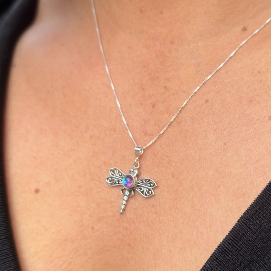 Adorned with a stunning 5mm stone, this pendant adds a subtle pop of color and sparkle, making it a lovely accessory for any outfit. Whether you're dressing up for a special occasion or adding a touch of whimsy to your everyday look, the Small Dragonfly Pendant is a versatile choice that enhances your style.